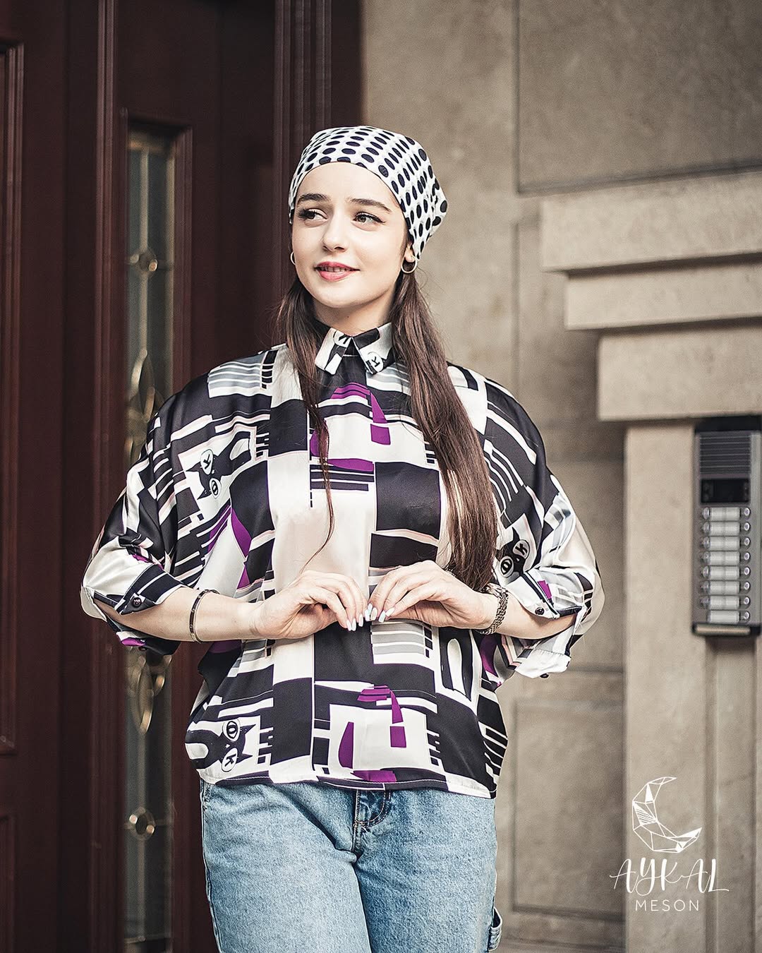 شومیز مجلسی رنگ بندی قهوه ای و بنفش سایز ۳۸