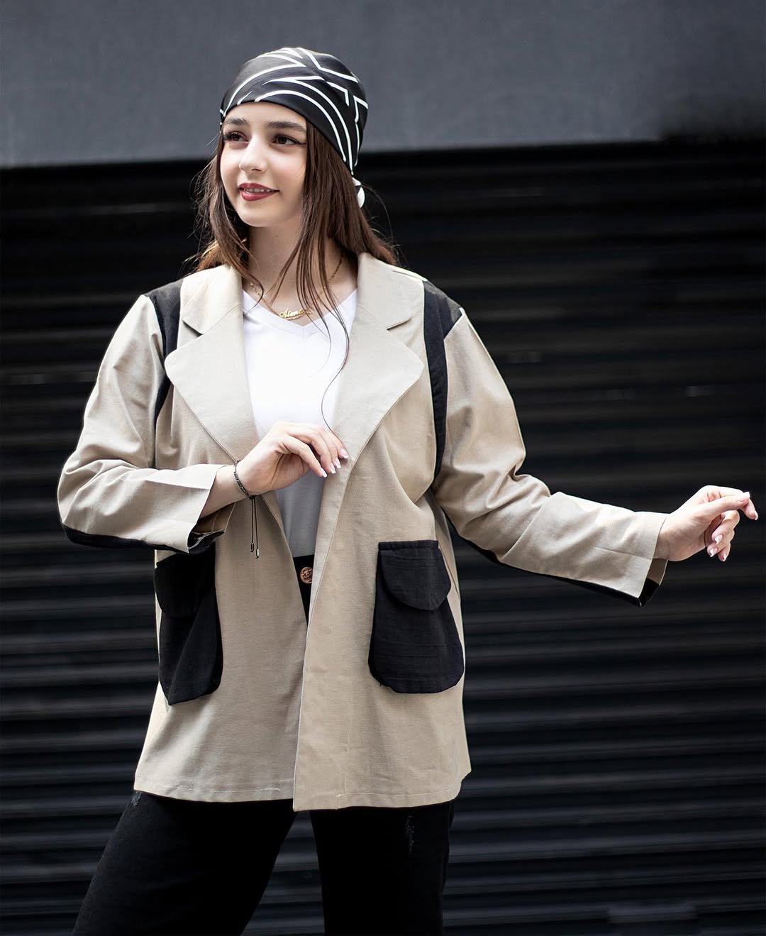 مانتو کتی با رنگبندی کرم، سفید و قهوهای